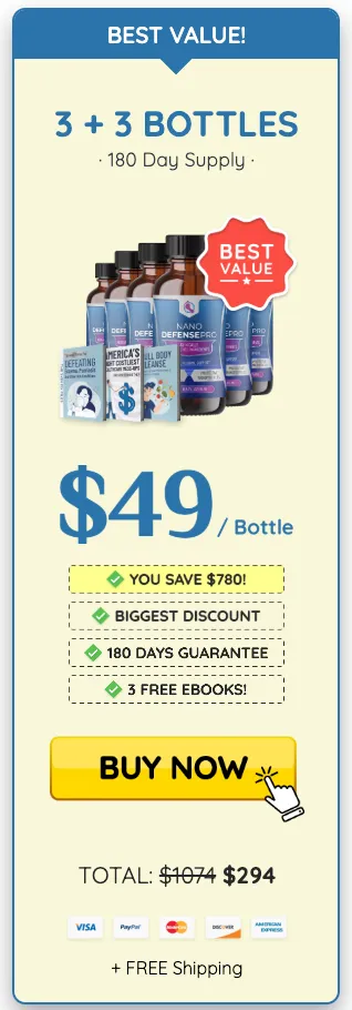 At this moment you can order NanoDefense Pro supplement for 50% OFF + Fast Shipping. This is a Limited-Time Offer and it won’t be available for long.